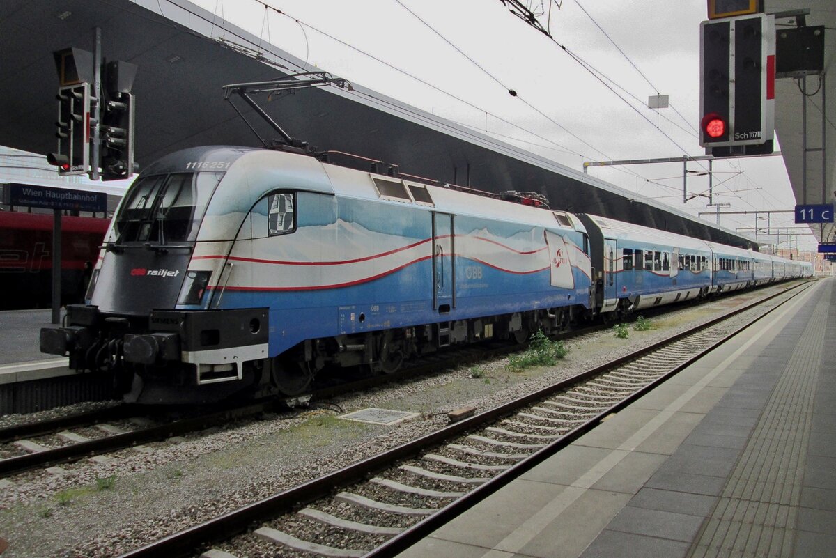 The Railjet is leaving the main station of Zürich on December 27th, 2009.