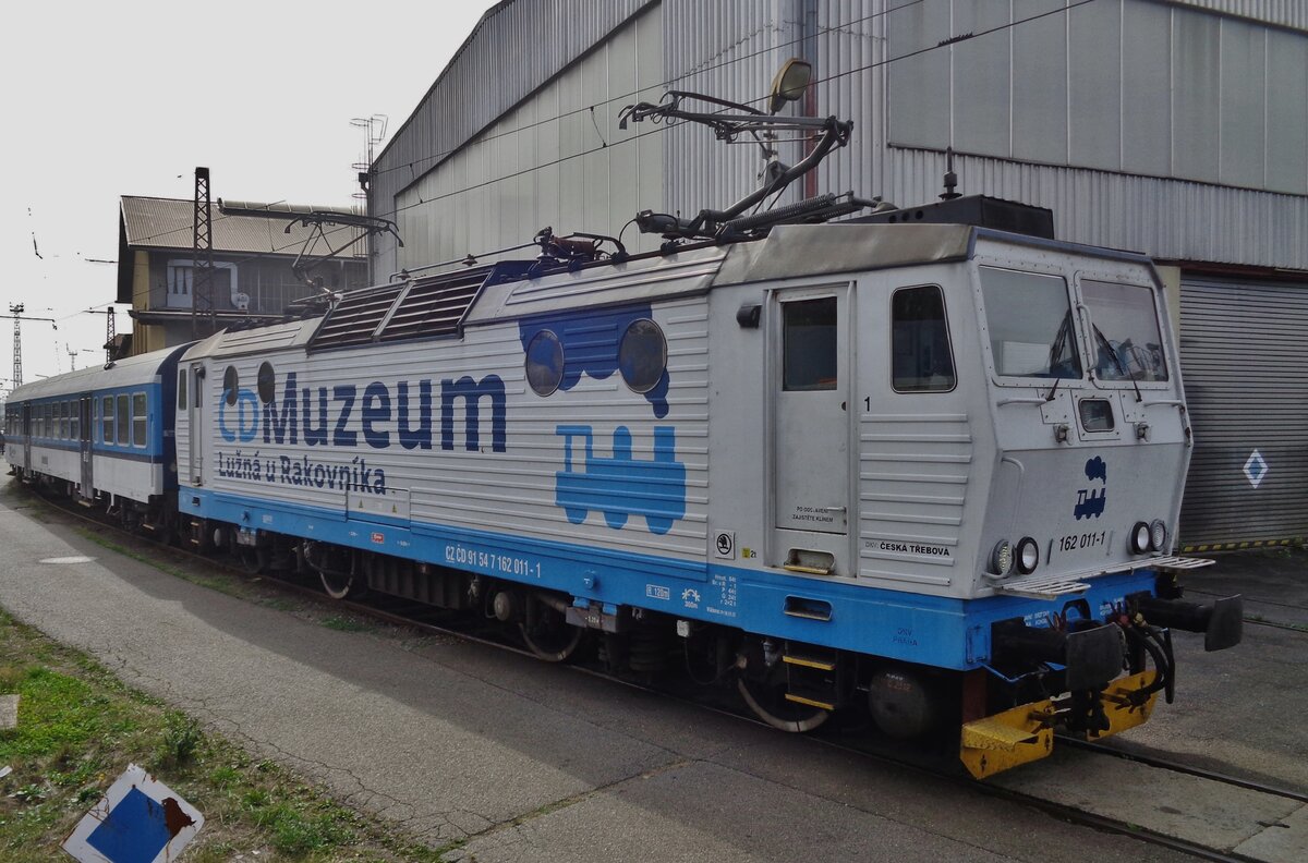 On 15 September 2018 CD 162 011 advertises for the railway museum at Luzna u Rakovnika in the works at Ceska Trebova and is shot during a regional open day.