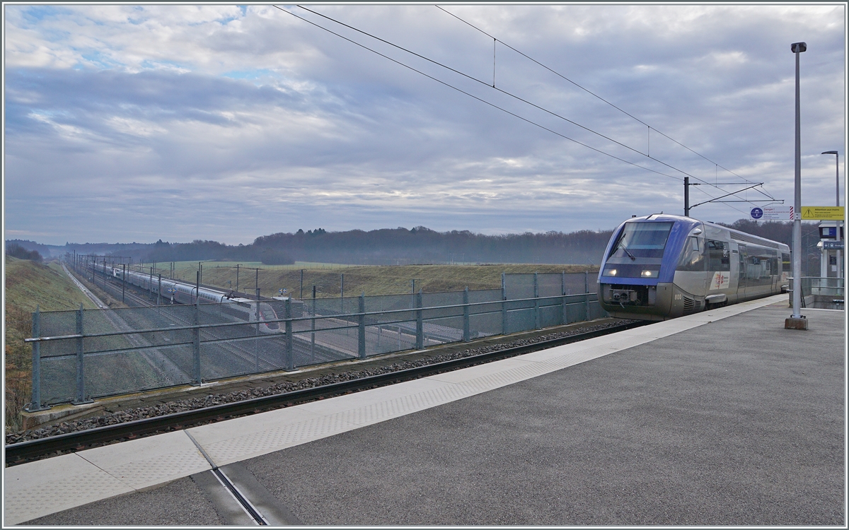 The SNCF TGV Duplex Rame 239 and 856 are by Agay on the way to Nice.
