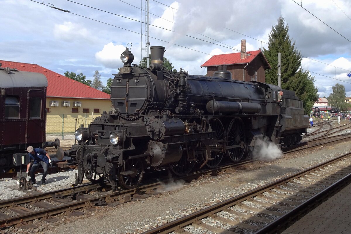 On 21 May 2023 Austrian Kriegslok 52.100 stands in the Heizhaus Strasshof. The dot between Classnumber and individual number is correct for Austrian steam engines.