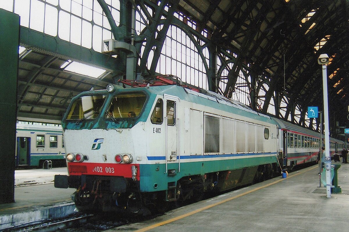FS E 402 022 with a IC in Milano Centrale.