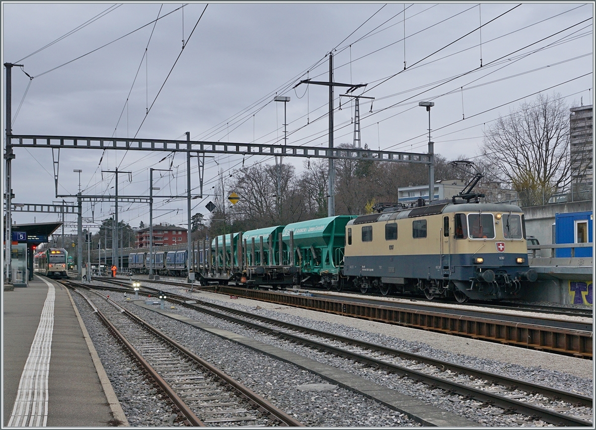 A BAM local train and a SBB RE in Morges.