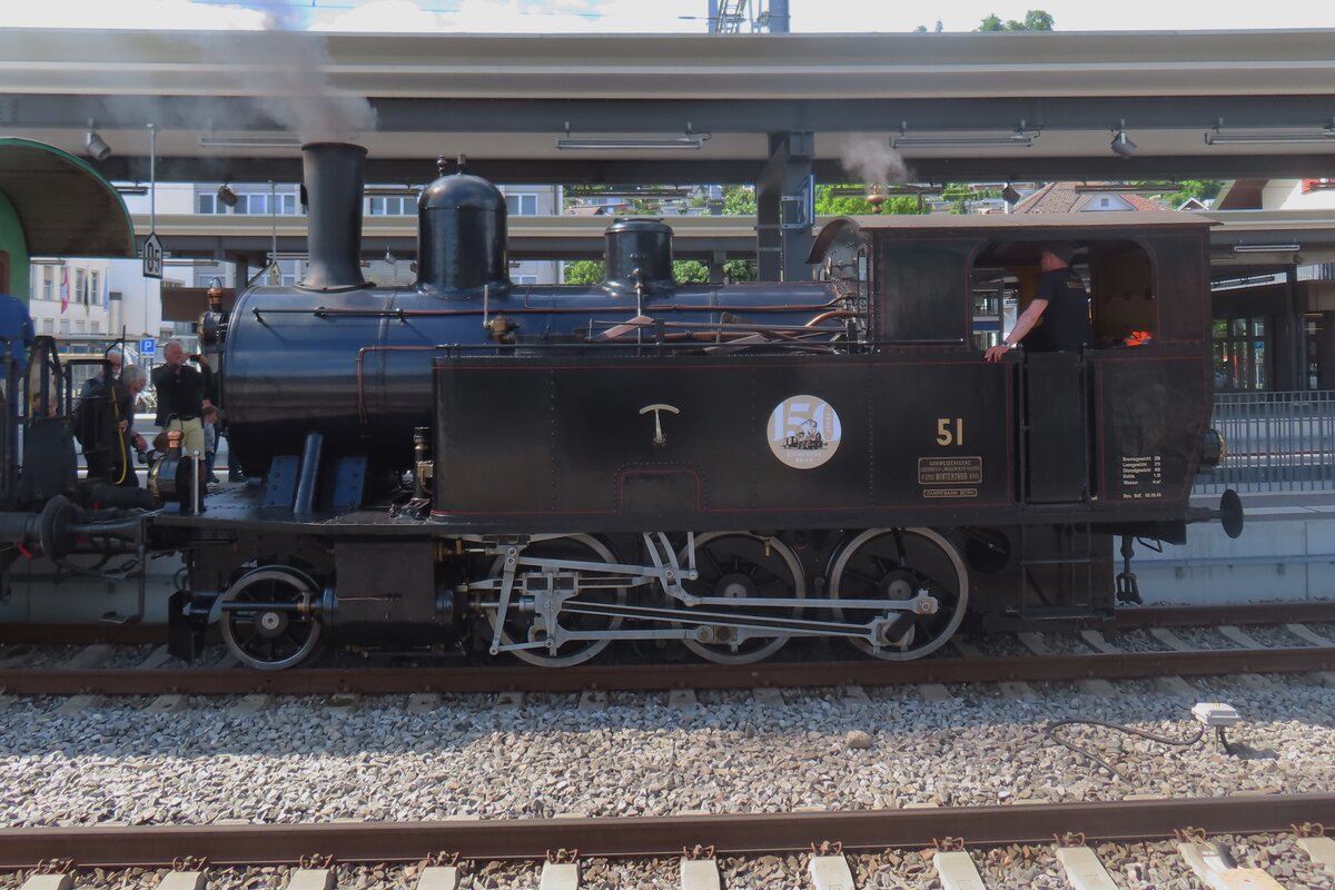 The BDB (ex SBB) Brünigbahn HG 3/3 1068 is leaving Meiringen on the way to Brünig Hasliberg.
