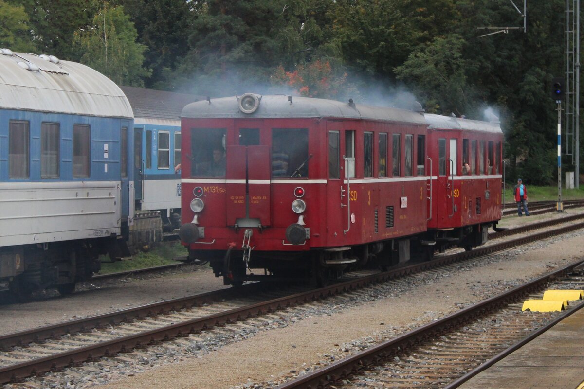 Clagg! M131-1549 quits Benesov u Prahy with an extra train to Vlasim on 27 September 2025 during the STEAM56 spectacle.