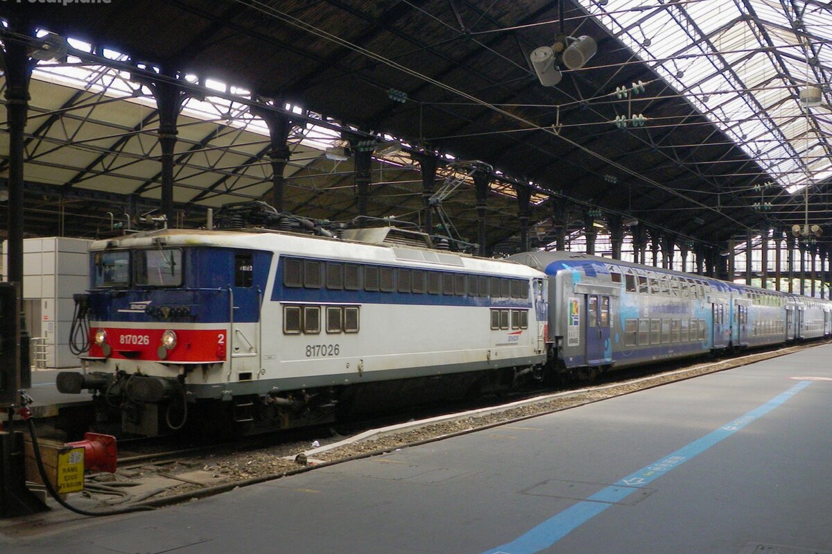 On 19 September 2011 SNCF 17026 stands with an suburban train in Paris Saint-Lazare.