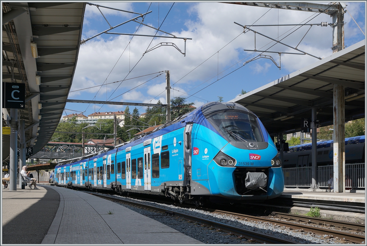 The SNCF Coradia Polyvalent régional tricourant 31551 and an other one are arriving at his destination Annemasse. This TER 884662 is comming from St-Gervais-Les-Bains-La-Fayet.