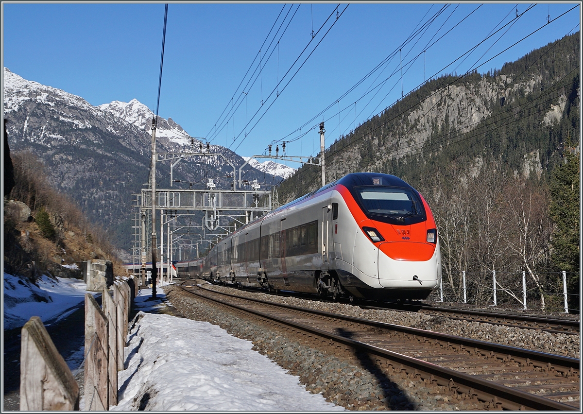 The SBB Giruno RABe 501 023 coming from Zürich is arriving at Lugano.