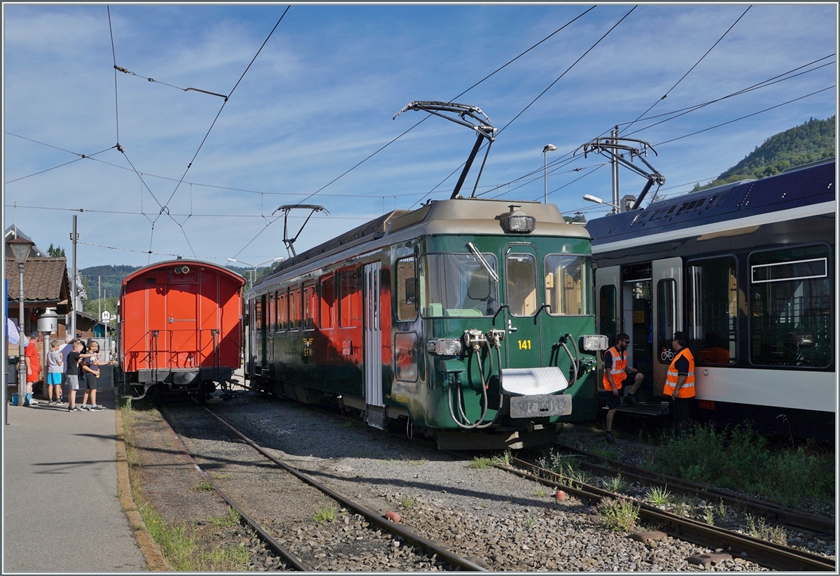 The BFD HG 3/4 N° by the Blonay-Chamby Railway is with his steamer train service near Vers-Chez-Robert on the way from Blonay to Chaulin