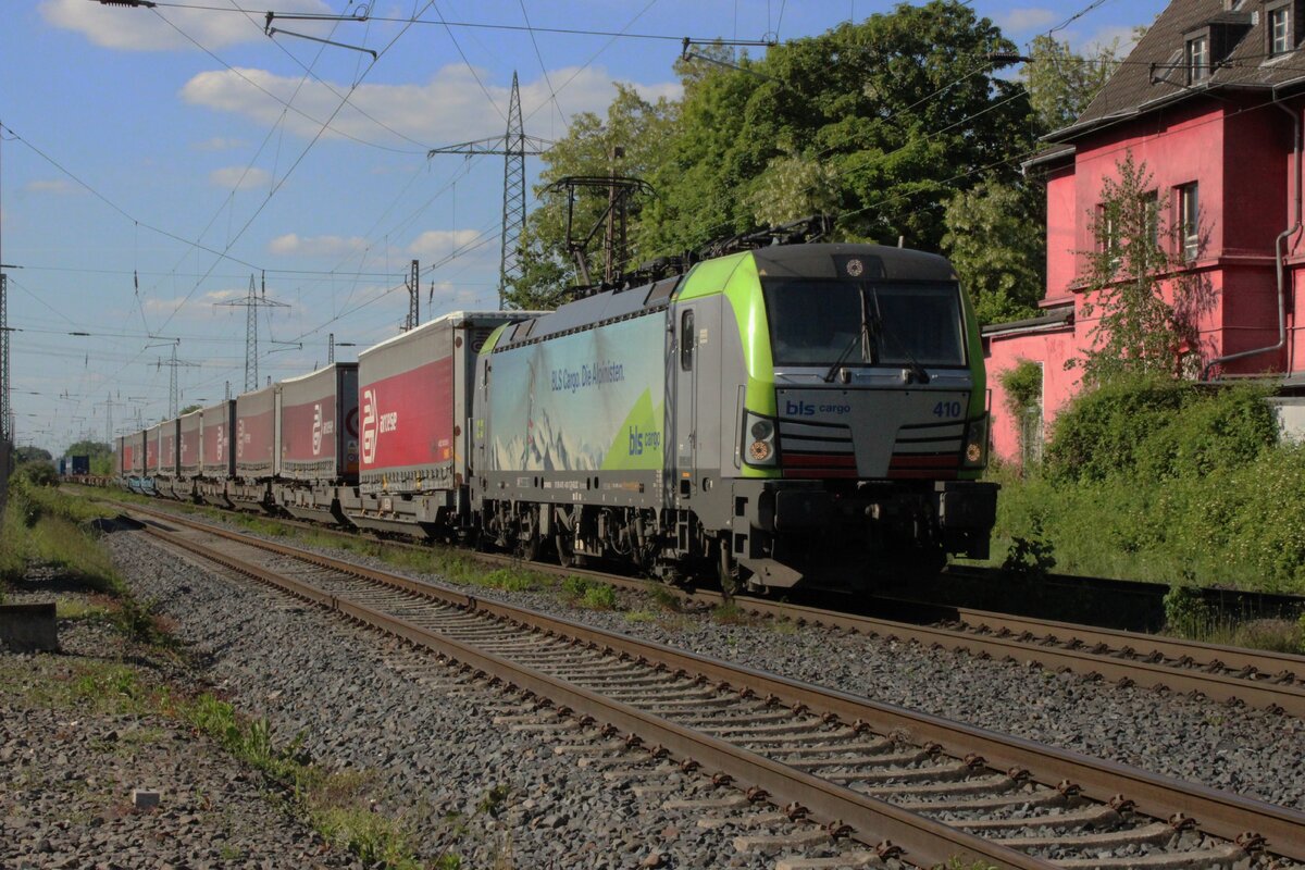 BLS 475 427 hauls an almost empty container train near Kaarst on 8 May 2025.