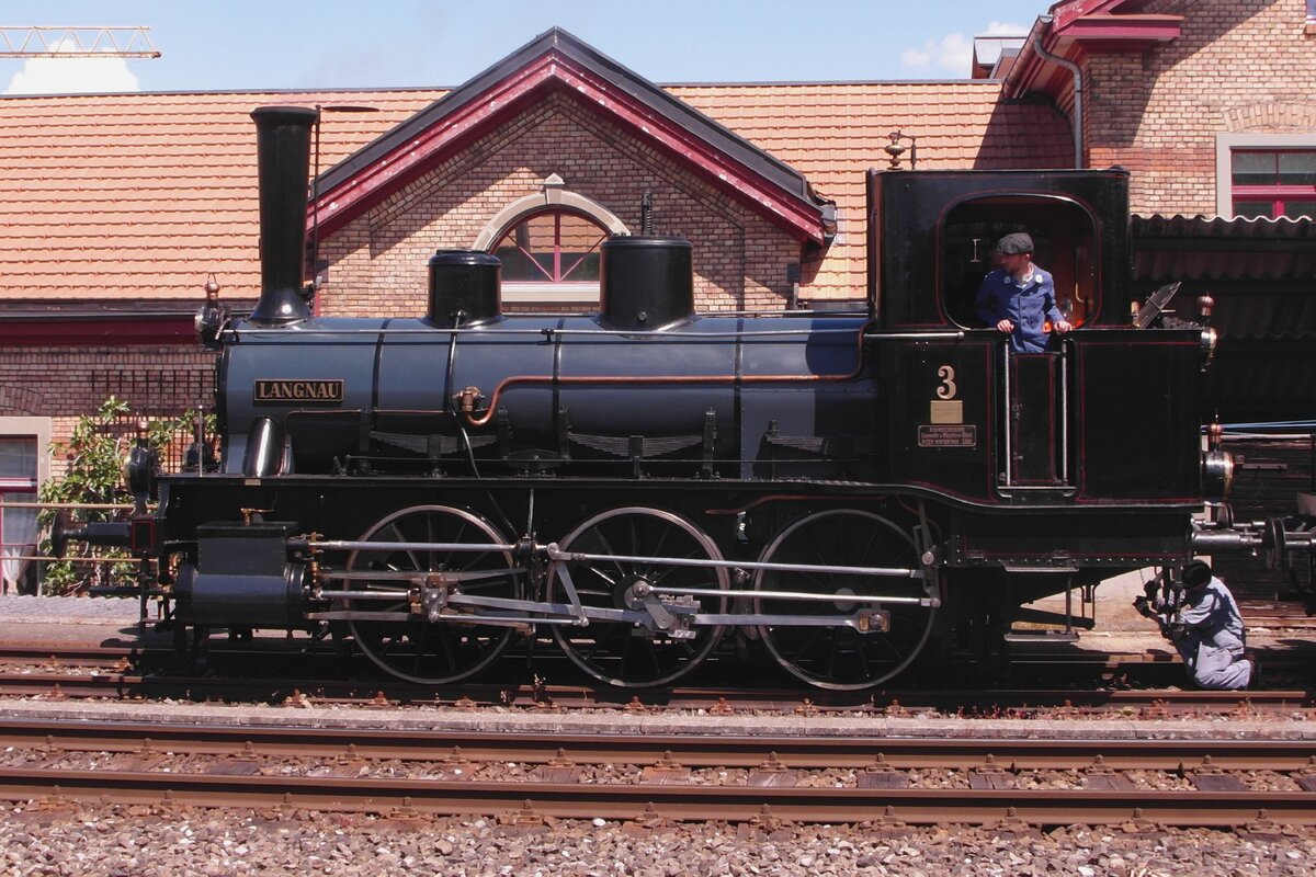 Side view on Lok-3 LANGNAU -that was just restored to fully operational conditions a few weeks before- at Burgdorf on 17 May 2025.