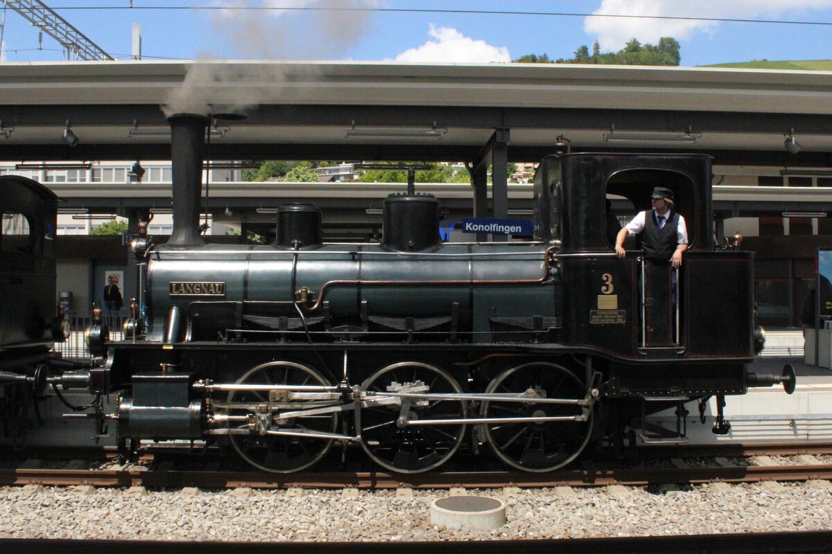 Restored to operational condition just in time for the big show: Lok-3 LANGNAU is seen at the station of Konolfingen on 18 May 2025 during the "150 Years of Emmentalbahn" train bonanza.