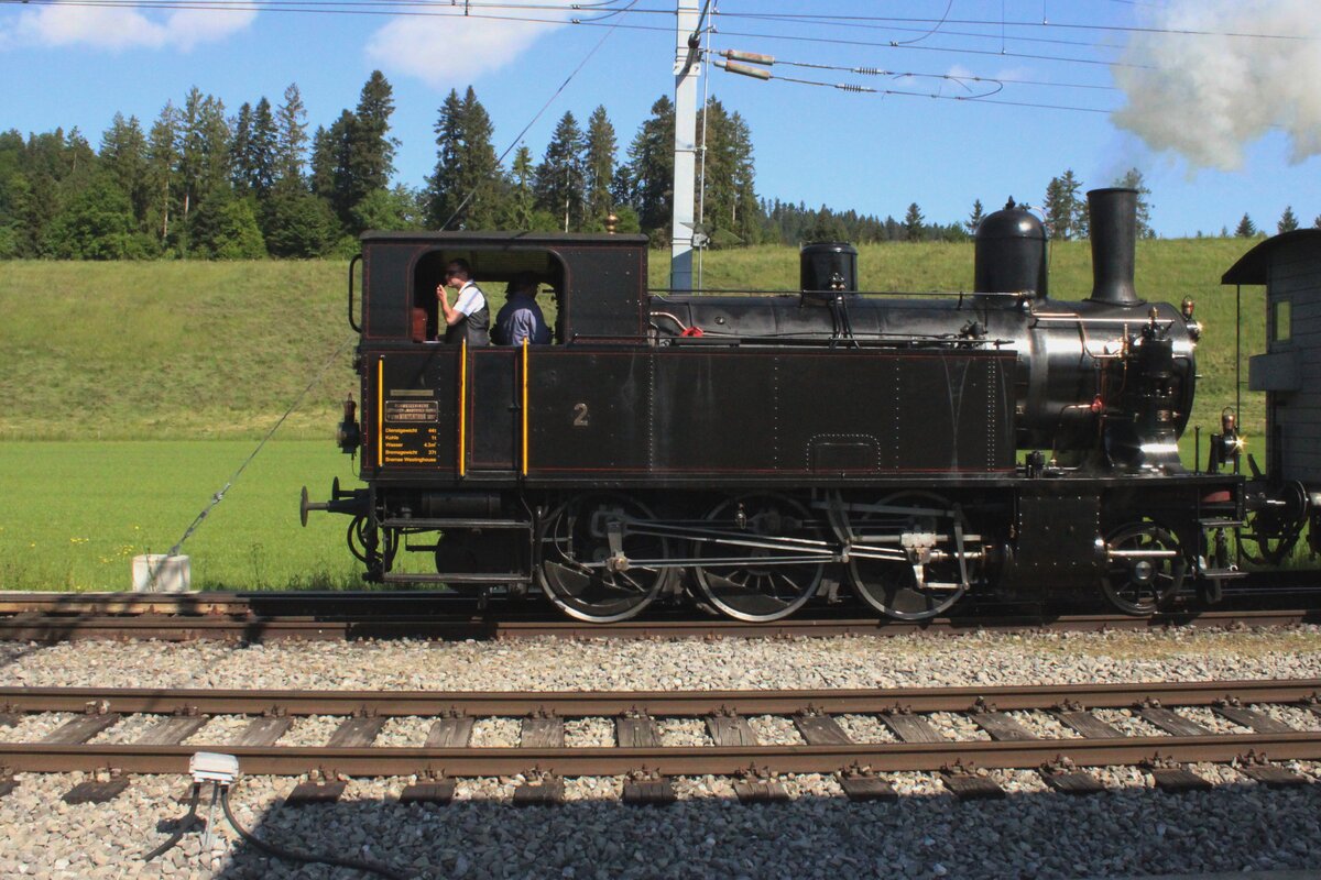 Side view on EBT-2 of the Dampfbahn Zürich standing in Sümiswald-Grünen on 18 May 2025.