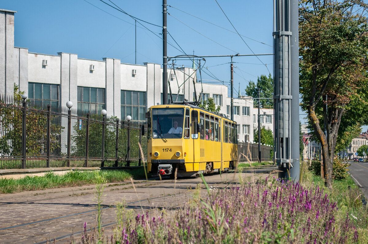 Another ex-Erfurt tram, Tatra KT4D No 1174, on the route 1. The tram arrives at Lviv main railway station. 15.08.2024.