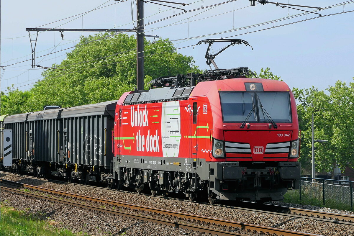 DB Cargo 193 342 Siemens Vectron "Unlock the Dock" livery with the Lead ore train from Antwerp Harbor to Stolberg. 14-05-2025