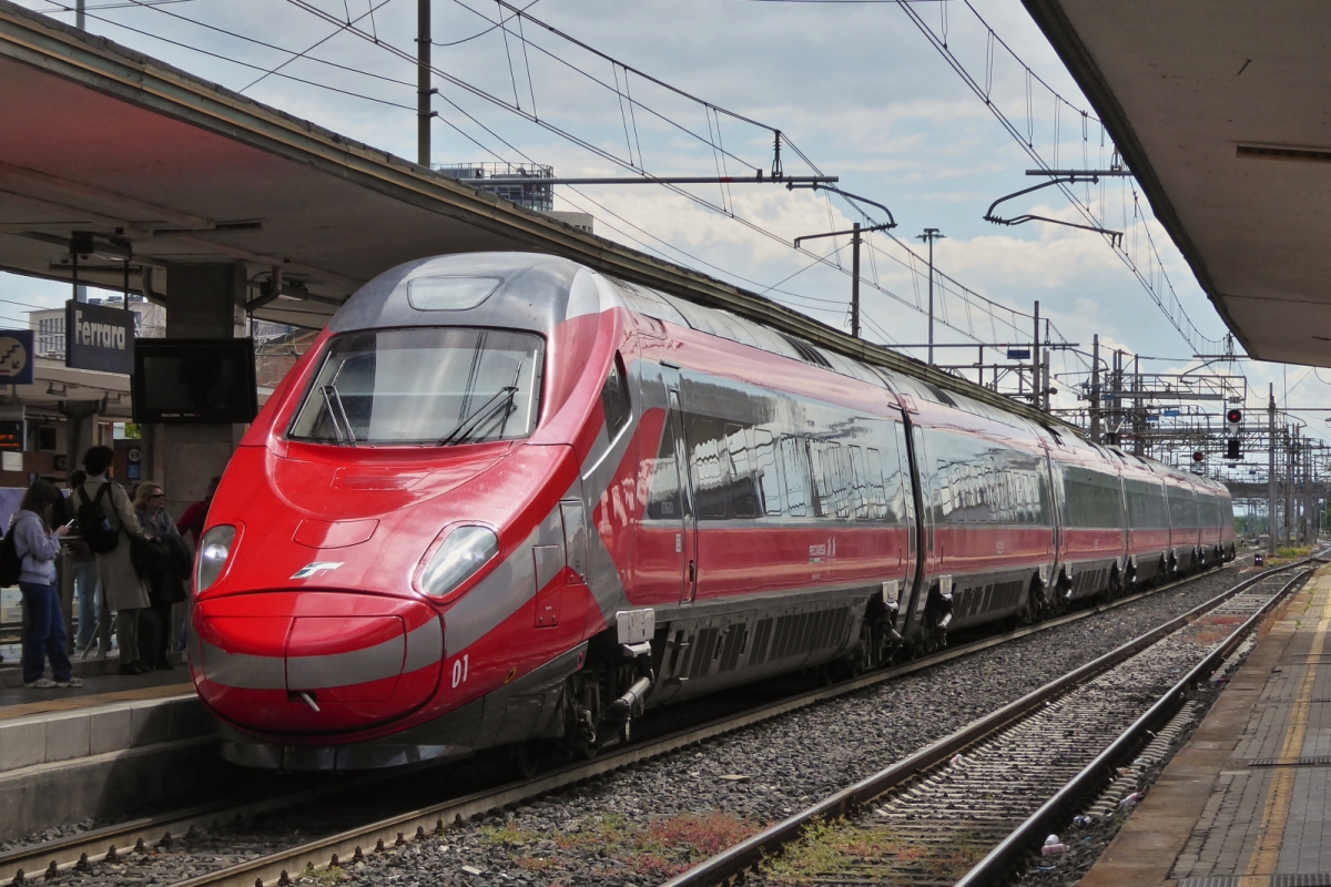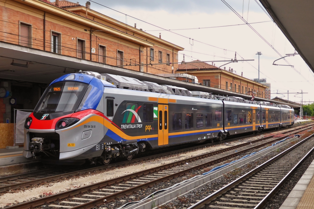 Multiple unit 350.102 is waiting on the siding at the station of Ferrara for its next deployment. May 8th, 2025