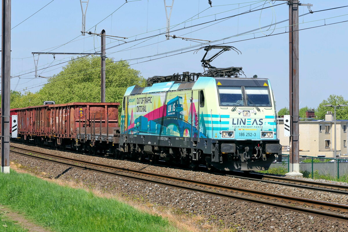 Lineas 186 252 Bombardier Traxx "Out of Traffic onto Rail" livery. 28-04-2025