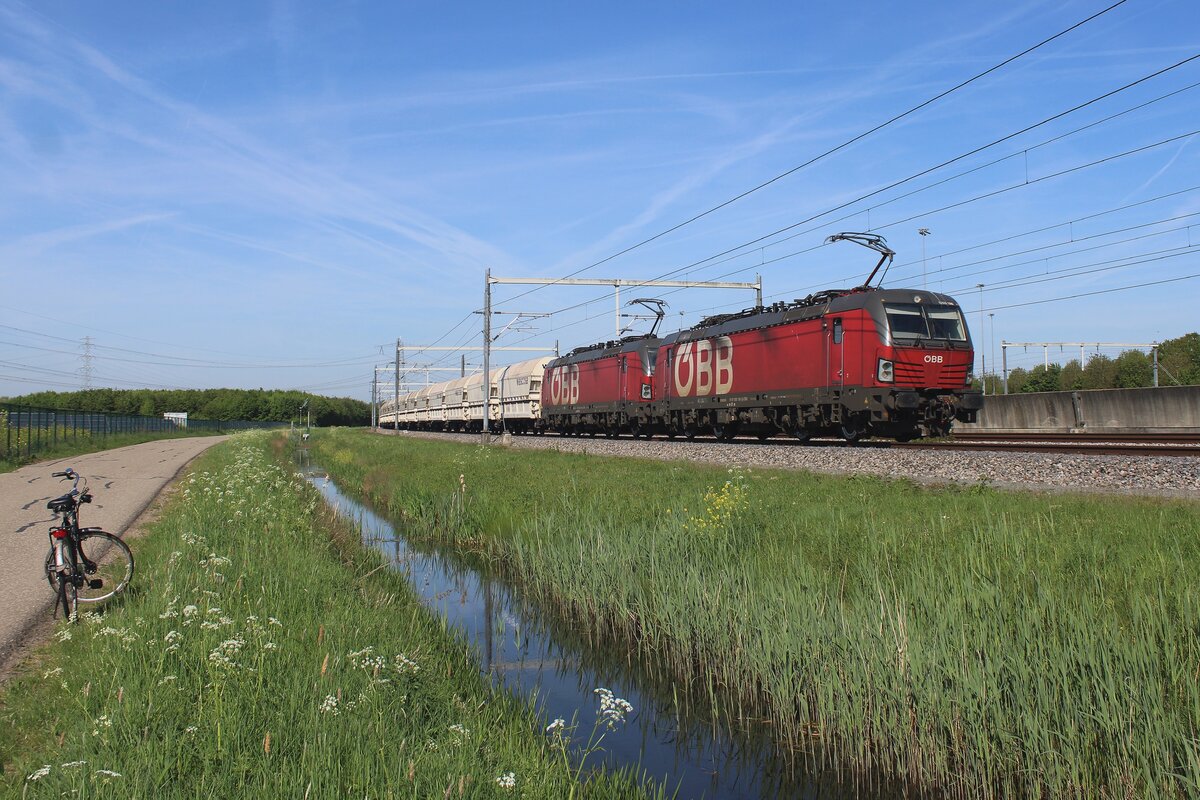 ÖBB/RCC Group 1293 186 hauls a coal train through Valburg on the Betuweroute near Valburg on 30 April 2025.