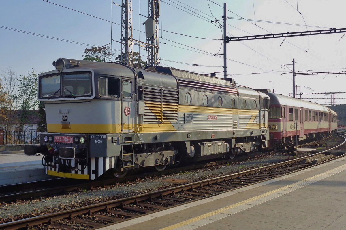 On 20 September 2018 Brejlovec 754 018 enters Brno hl.n. with a replacement diesel train from Jihlava.