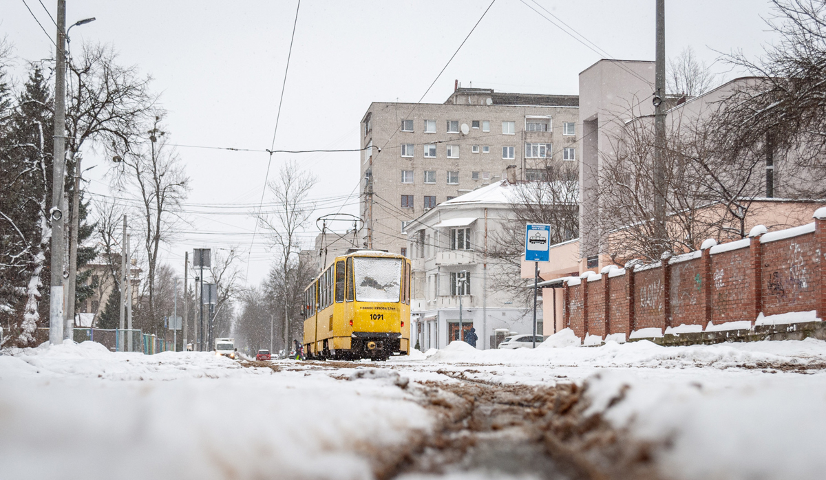 Tatra KT4SU tram 1091 on route 2. Taken on January 14, 2024 on Yevhen Konovalets Street.