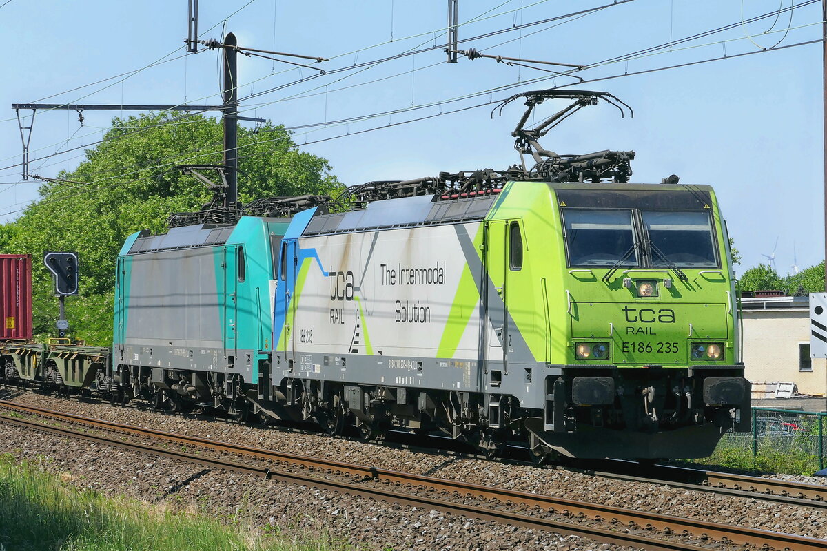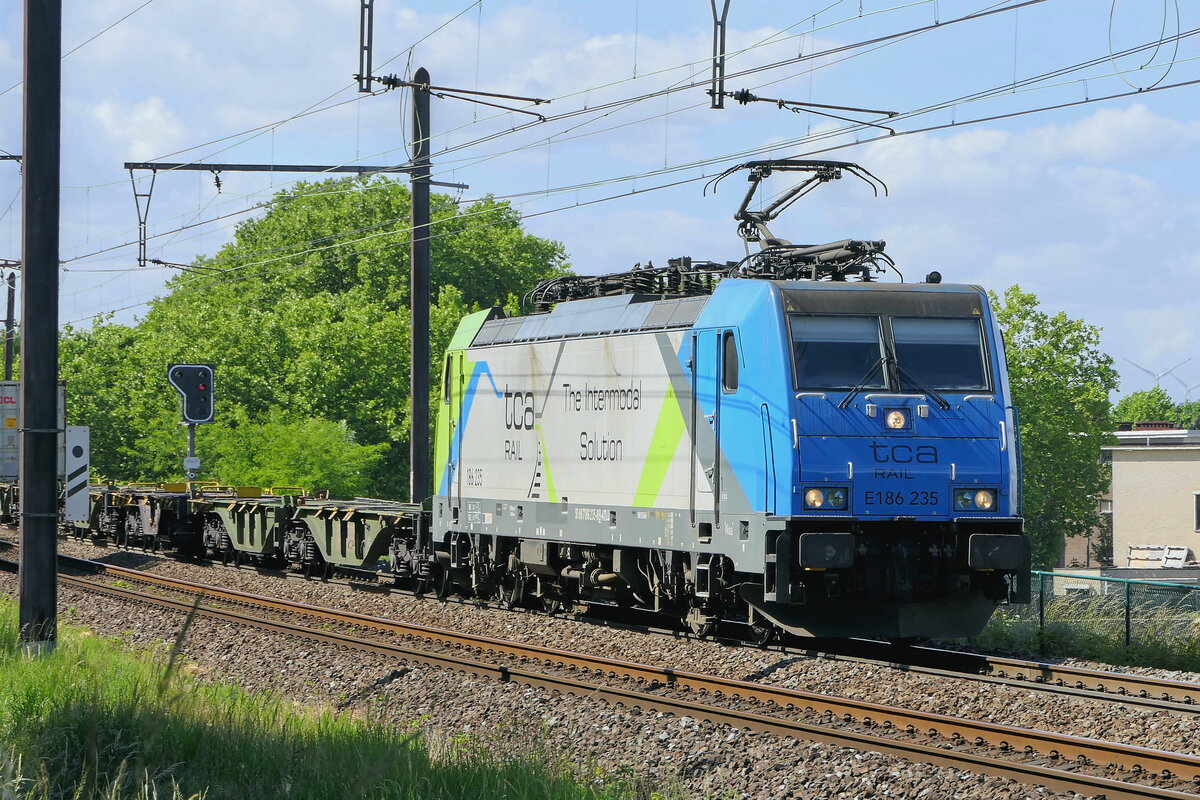 TCA Rail (Terminal Container Athus) 186 235 Bombardier Traxx with the Container shuttle from Antwerpen to Athus. 22-05-2025