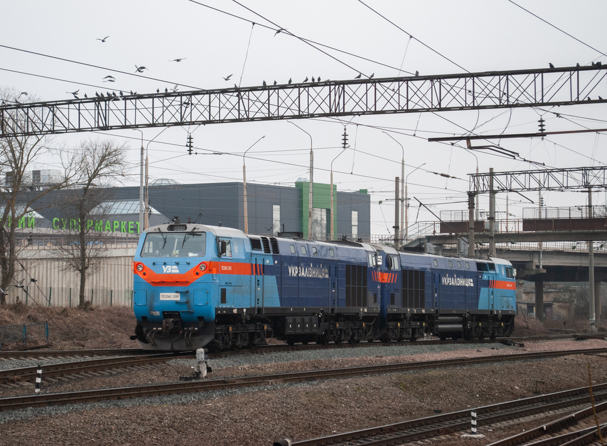 TE33AC-2001 locomotive at Ternopil-Vantazhny station. January 19, 2025