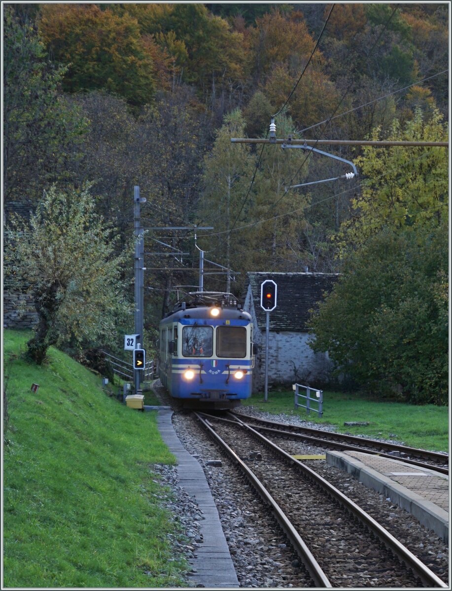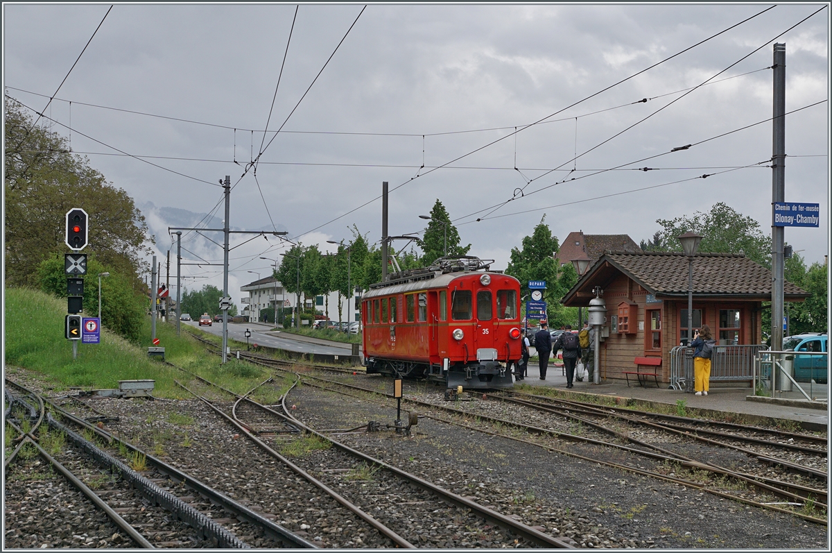 The RhB Bernina Bahn ABe 4/4 I No. 35 of the Blonay Chamby Railway has arrived in Chaulin and will return to Blonay after a short turnaround.