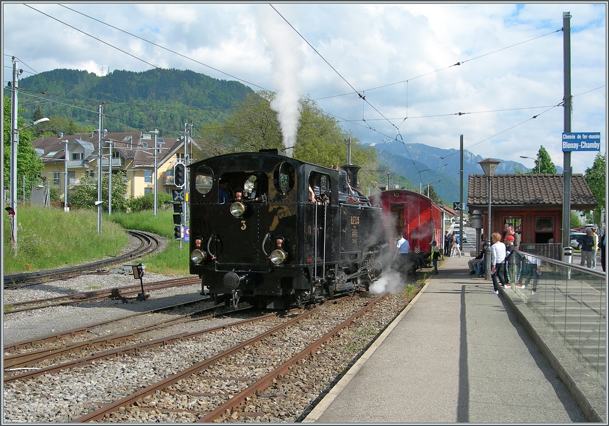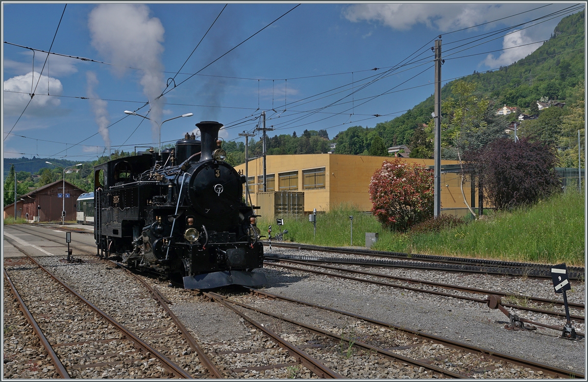 The BFD HG 3/4 No. 3 of the Blonay Chamby Railway has arrived in Blonay with its steam train and is now shunting to take over the train for the return journey to Chaulin.