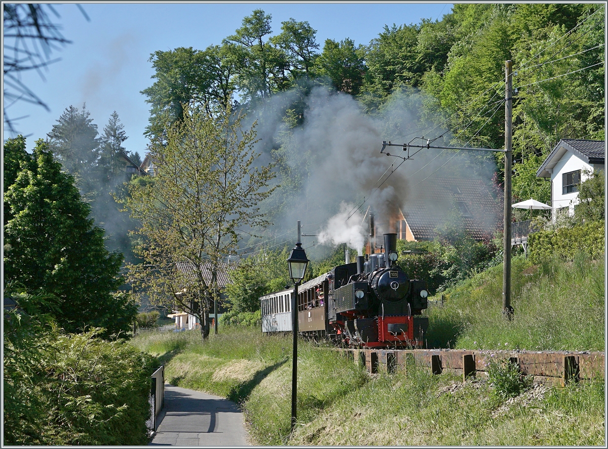 The SEG G 2x 2/2 105 by the Blonay Chamby Railway is by Blonay on the way to Chaulin.