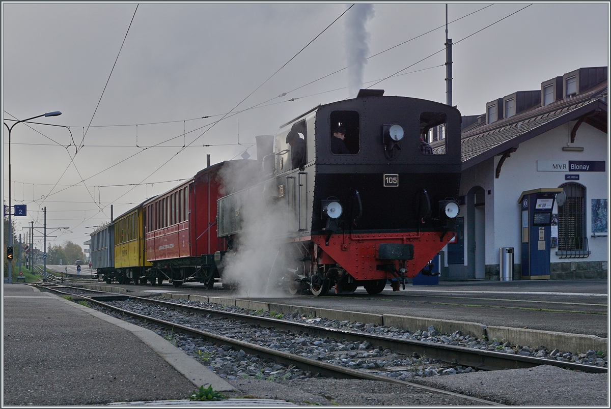 The SEG G 2x 2/2 105 by the Blonay Chamby Railway is waiting in Blonay his departure with the Riviera Belle Epoque Service to Vevey.