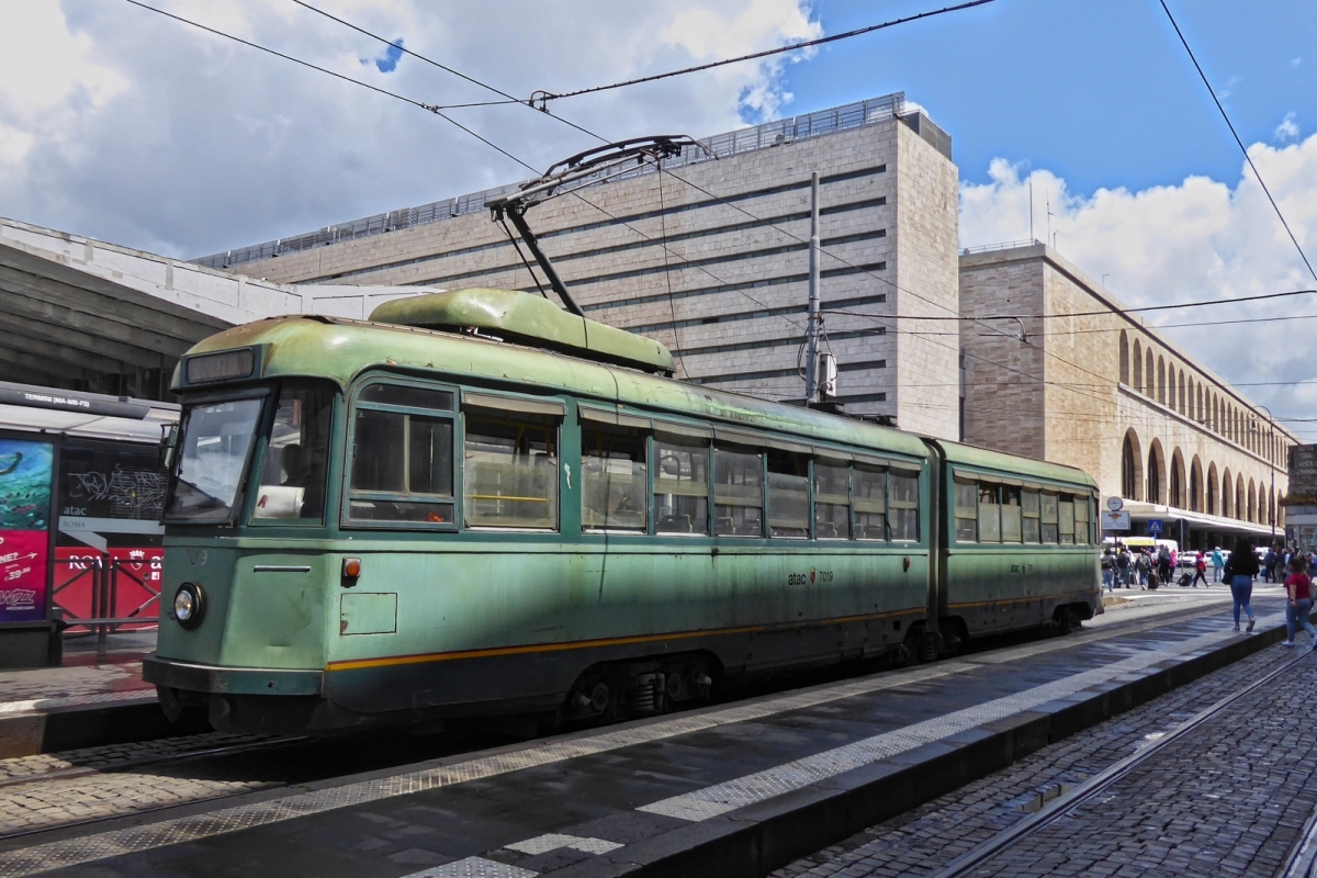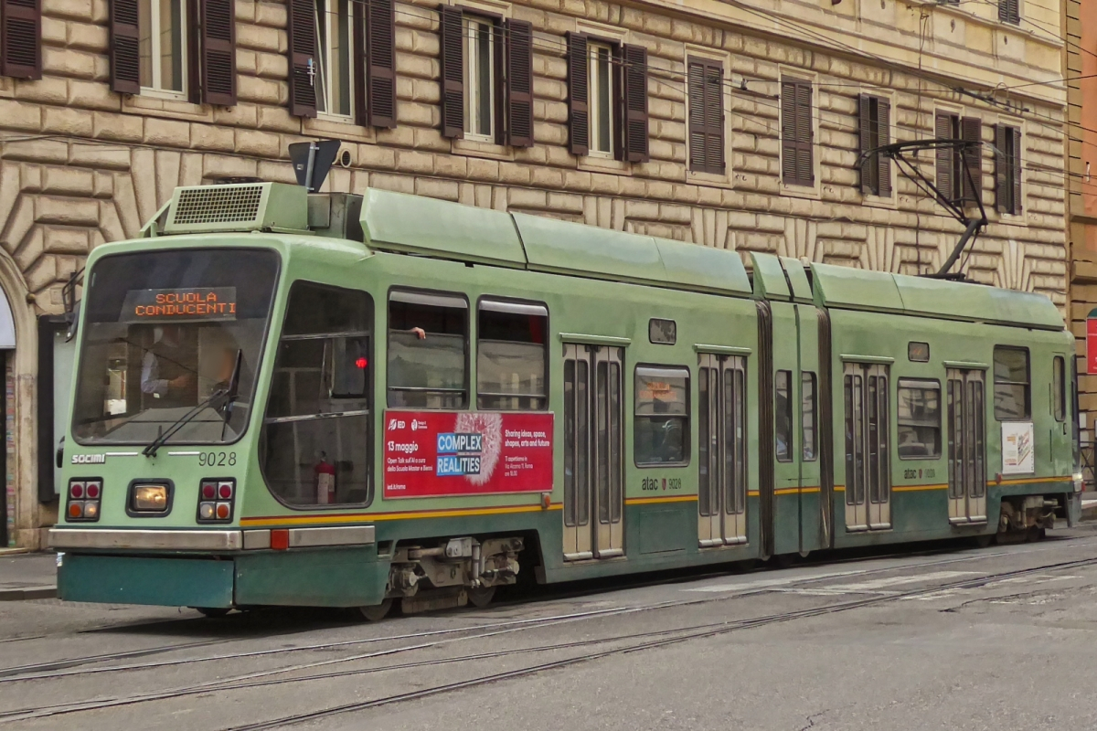 Tram 7101 winds its way through the narrow streets of Rome towards the stop at Termini station. May 7th, 2025