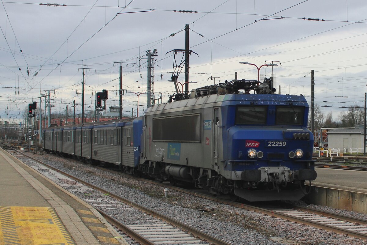 Sadly tagged 22259 calls at Strasbourg with a TER from Selestat to Saverne on 14 February 2024.