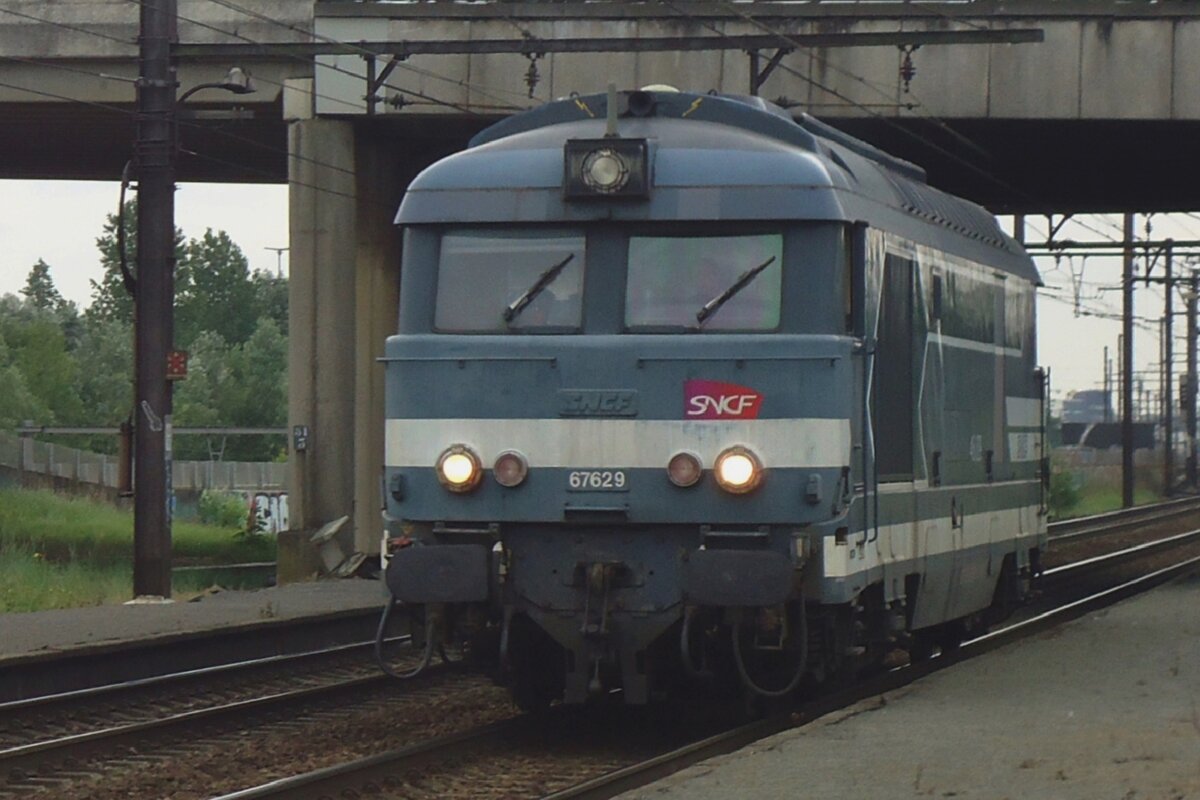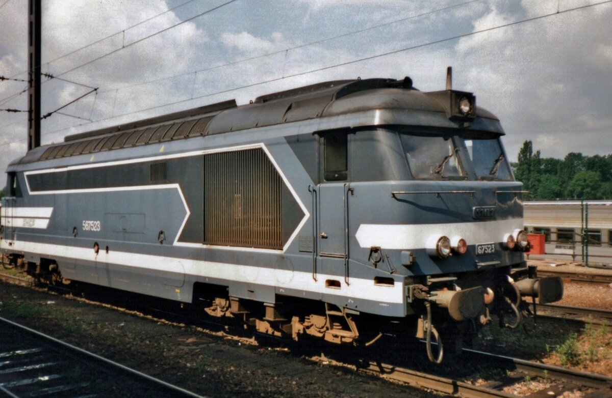 On 19 May 2006 SNCF 67438 wears the Multi-Service colours whilst ariving at Lyon Part-Dieu with a CoRail from Grenoble.