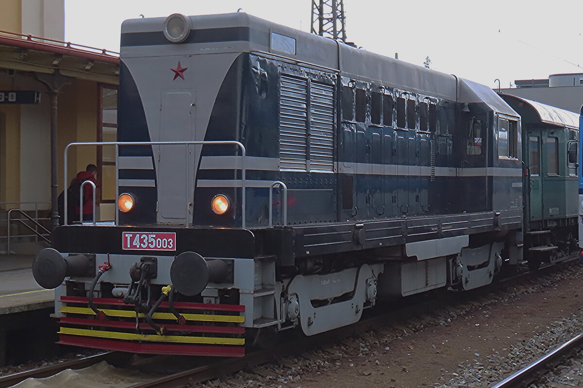 On 28 September 2025 T435-003 shunts a Bardotka Diesel engine at Benesov u Prahy. Class T435 is the original designation for the later CSD/CD/ZSSK Class 720.