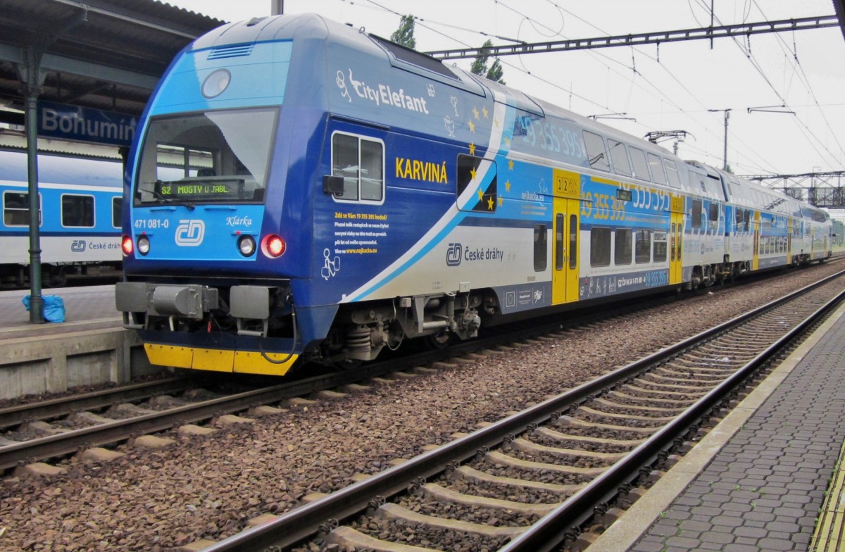 CD 471 081 advertises local train services and stands on 4 June 2013 in Bohumin.