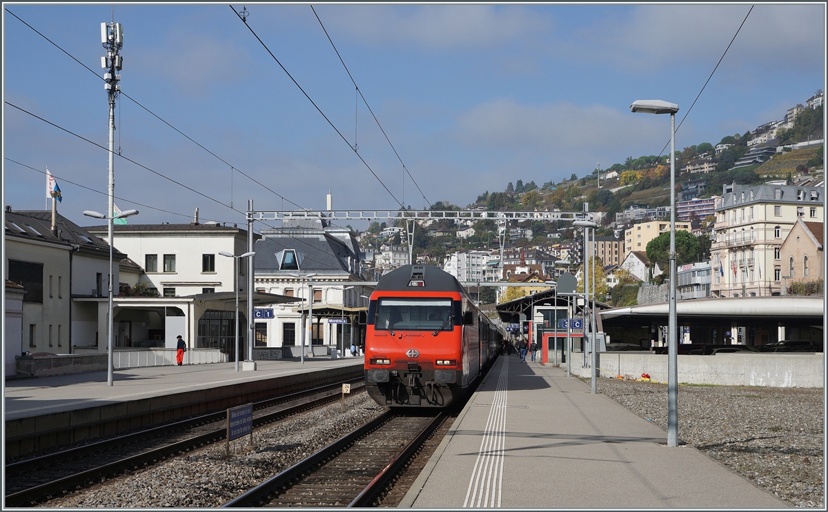 The SBB Re 460 079-7 with an IR to Geneva Airport by Villeneuve.