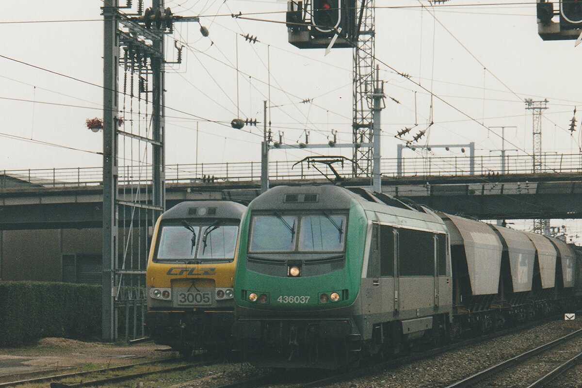 When Astrides strode on Belgian territority: on 13 June 2006 SNCF 36004 hauls a container train from Somain through Antwerpen-Luchtbal, where the photographer awaits this interloper from the platform.