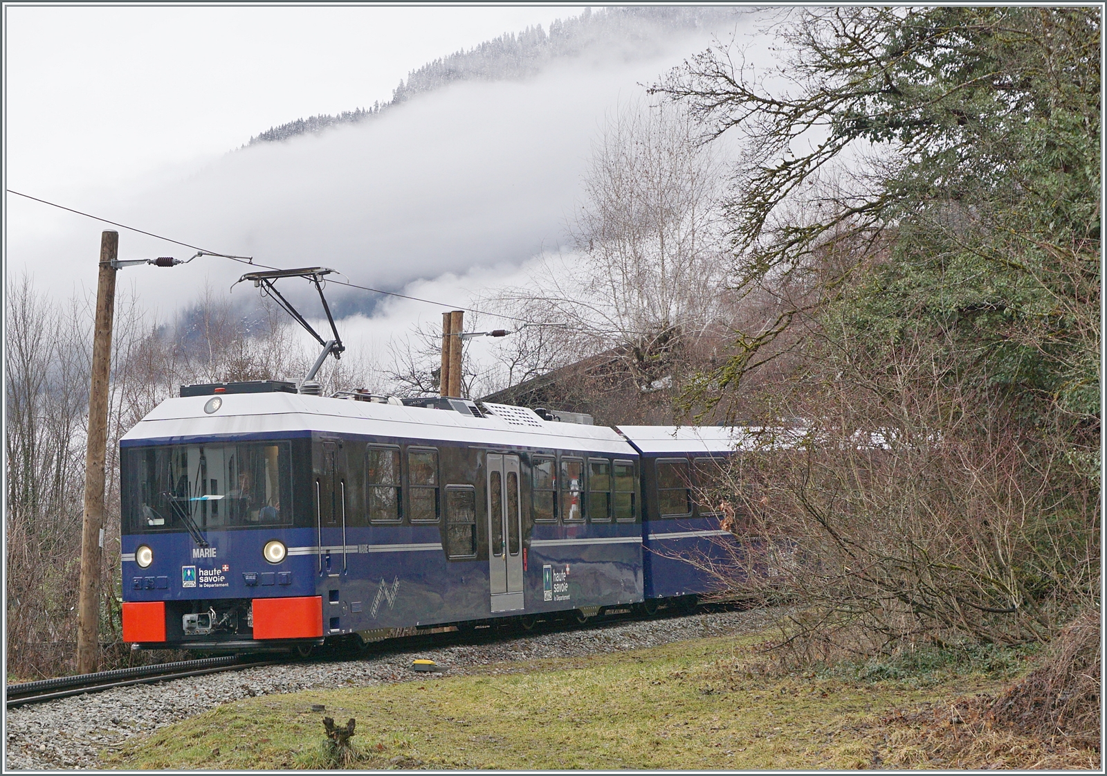 The 12.4 km long TMB (Tramway du Mont-Blanc) rack railway has been running from Saint Gervais les Bains Le Fayet station to the Nid d'Aigle in the Mont Blanc massif since 1913, with the first section to Col de Voza having been opened in the summer of 1908. A curious feature is the ‘naming’ of the vehicles: they have no identification or number but are named after the director's daughters, and each train has its own colour. At the hairpin bend between Le Fayet and St-Gervais, the green ANNE with the control car of the same name is on its way to Col de Voza; the rest of the route is currently closed due to avalanche danger.
