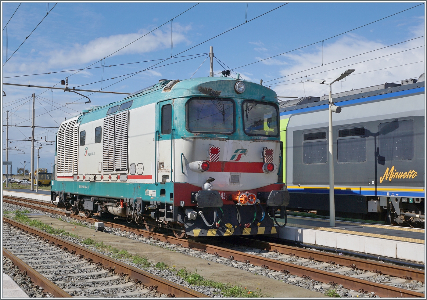 At Reggio di Calabria Centrale stands the beautifully maintained FS D 245 040 (92 83 2245 040 I-TI). The beautiful diesel locomotive is waiting as a locomotive train for departure.