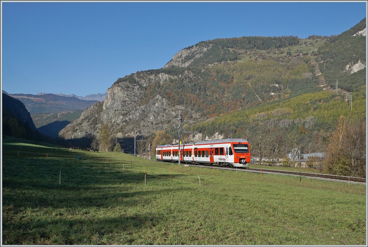 The TMR Region Alpes NINA RABe 525 040 in Sembracher is the local service to Orsières.