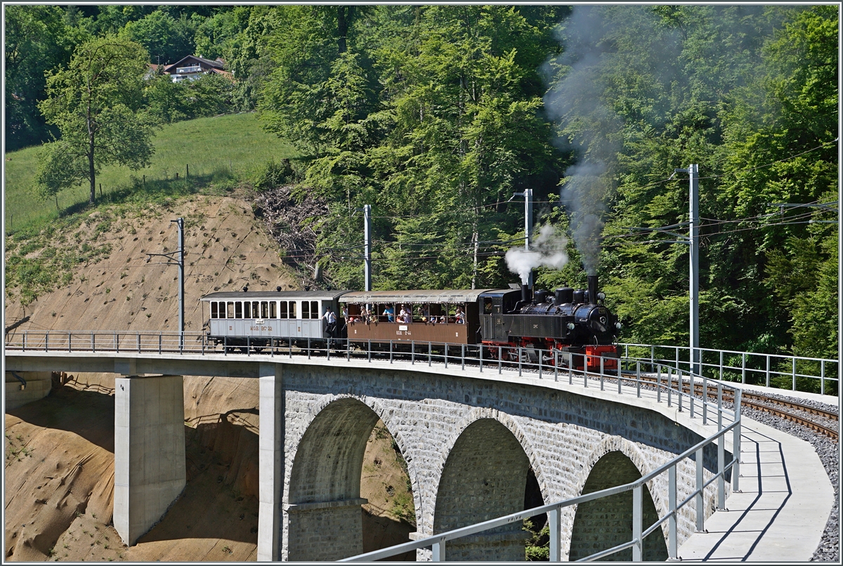 The Blonay-Chamby G 3/3 N° 6 is leaving the Blonay Station.