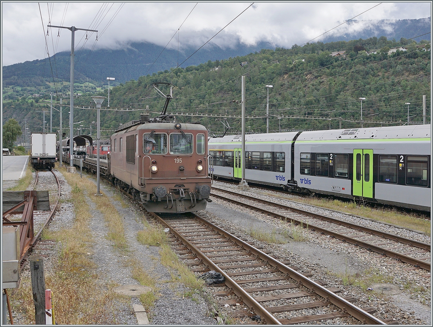 La BLS Re 4/4 192 con un RE hacia Interlaken Ost en Erlenbach.