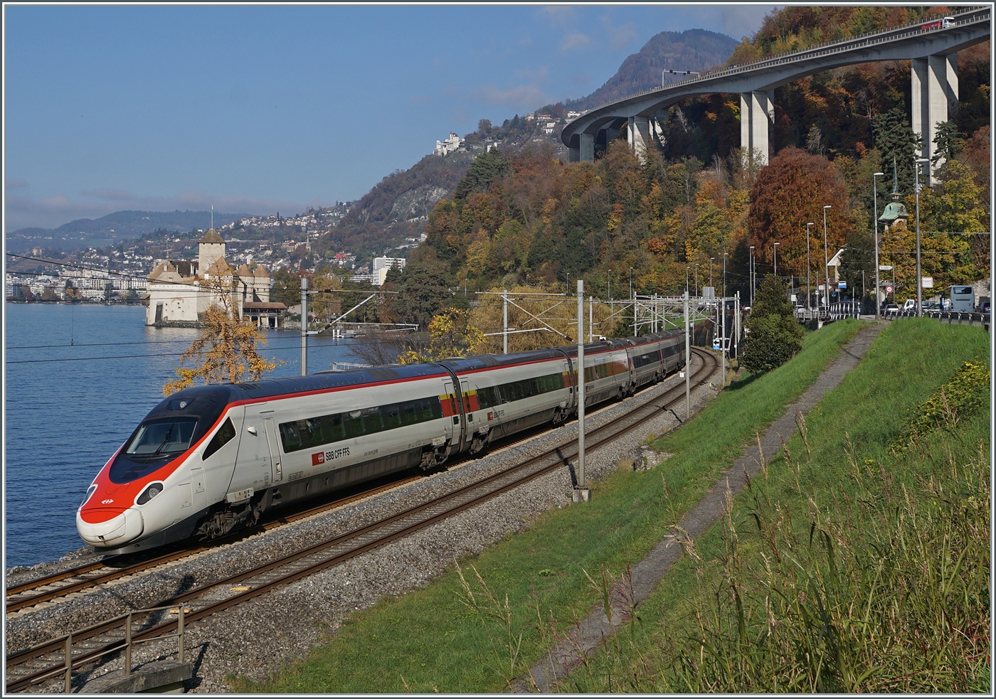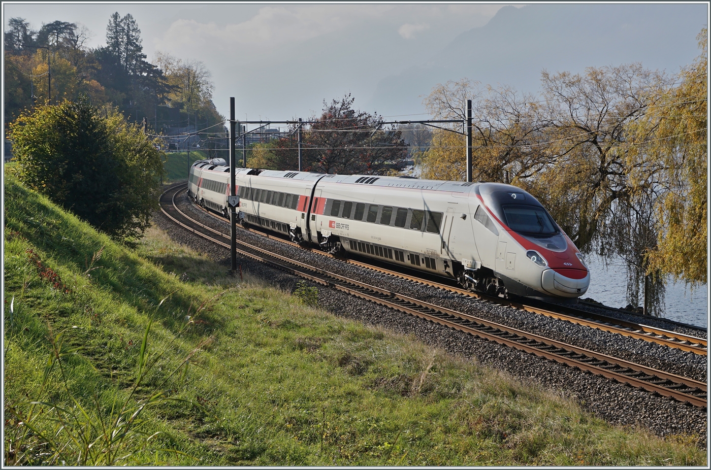 A SBB ETR 610 between St Maurice and Bex on the way to Geneva.